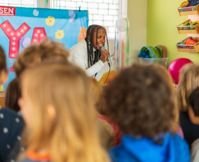 Am 27. März 2026 erlebten die Kinder der Klax Kindergärten Hexenkleckshausen und Elements einen besonderen Vormittag. Die Musikerin und Autorin Lindiwe Suttle Müller-Westernhagen war zu Gast und stellte ihr Kinderbuch Naya in einer interaktiven Lesung vor. Damit alle Kinder teilnehmen konnten, fand die Veranstaltung zweimal hintereinander statt.