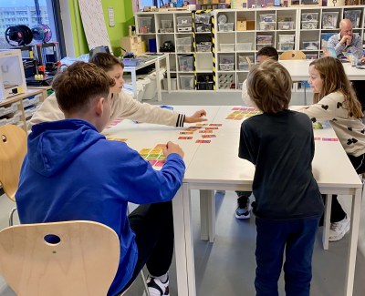 Besonders anschaulich zeigte sich die Arbeit beim gemeinsamen Kartenspiel „Fish and Ships“, bei dem die Schüler*innen die Nahrungspyramide des Meeres erkundeten. Sie wählten ein marines Lebewesen aus, recherchierten dazu und entwickelten Schutzideen. Die Ergebnisse wurden anschließend kreativ umgesetzt: Mit Micro:bits programmierten die Schüler*innen Leuchtanzeigen mit passenden Slogans, wodurch gleichzeitig digitale Kompetenzen gefördert wurden.